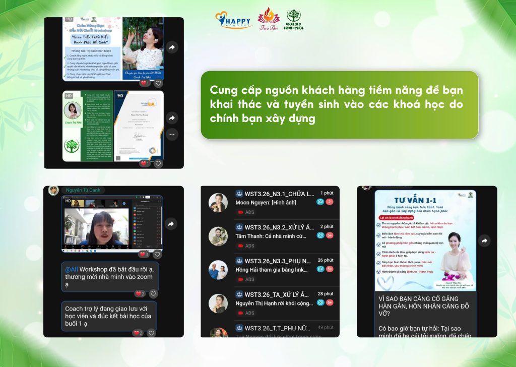 Một trong những khó khăn lớn nhất khi làm nghề là không biết tìm khách hàng ở đâu. Nhưng sau khoá học Người Gieo Hạnh Phúc, Happy Academy sẽ giúp bạn bạn:
