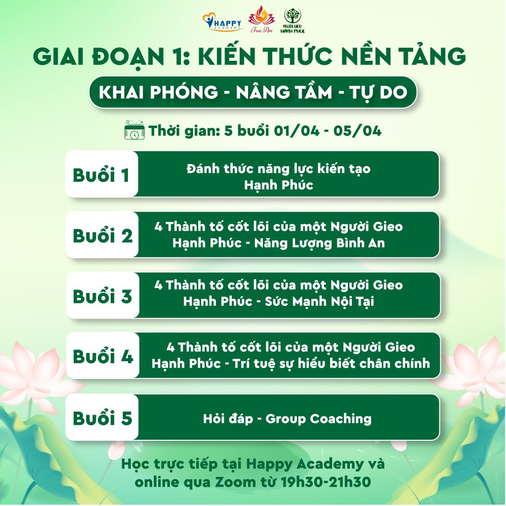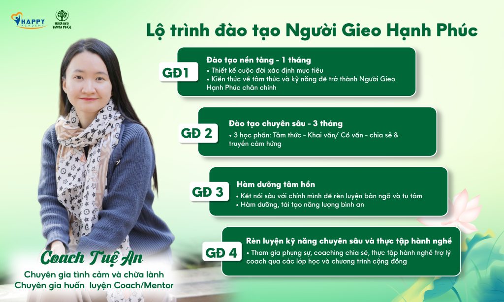 Khóa học Người Gieo Hạnh Phúc tại Happy Academy hiện là một trong những chương trình đào tạo khai vấn được xây dựng bài bản và có hệ thống.